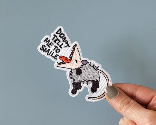 #73 Don't Tell Me to Smile Possum Iron-On Patch