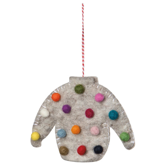 F63 - Felt Baby White Puppy With Antlers In Red Sweater Ornament