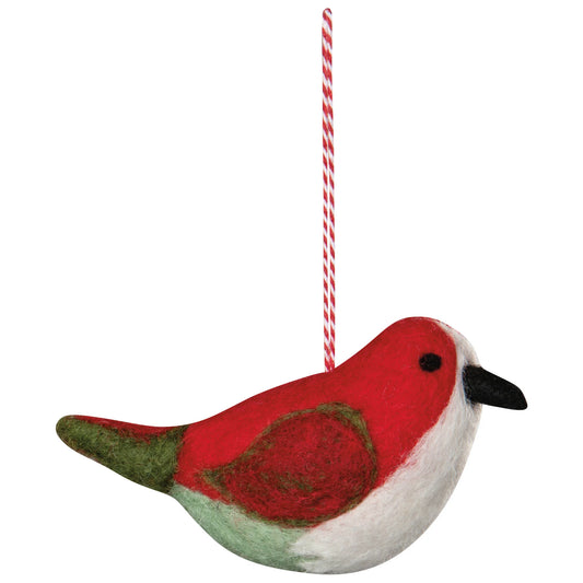 F86 - Felt Cardinal Ornament On Holly Leaves