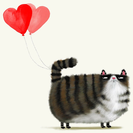 Grumpy Cat With Love Heart Balloons Greeting Card