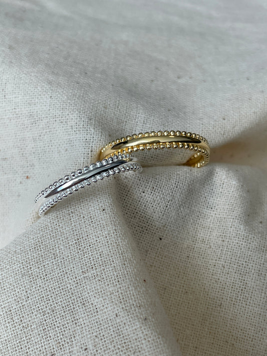 Slim Band With Centre Migraine Row 14K Gold Ring Vermeil Ring