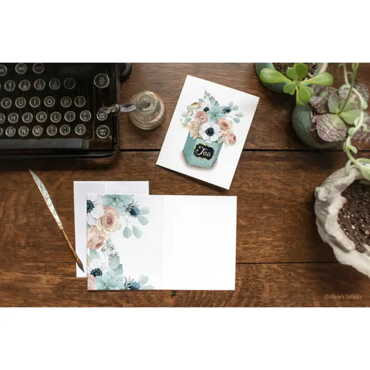 Vintage Tea Tin With Flowers Card