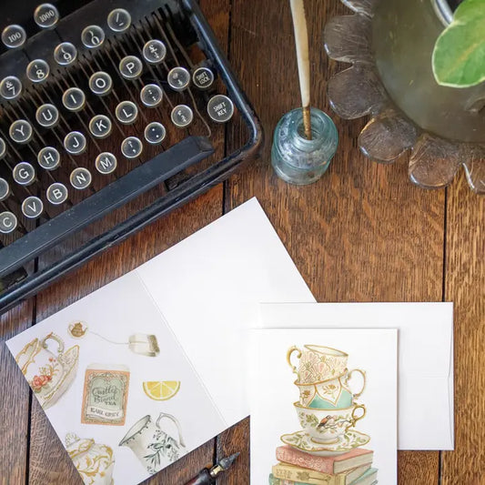 Vintage Teacup Stack on Antique Books Card