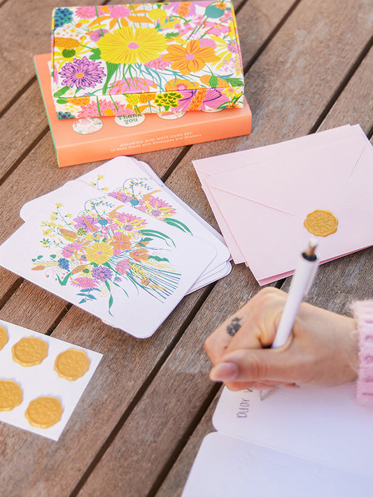 Floral Notes Mini Note Card Set with Stickers