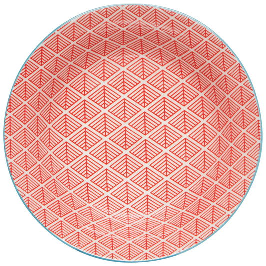 Stamped Bowl 8" Blue Red Dash
