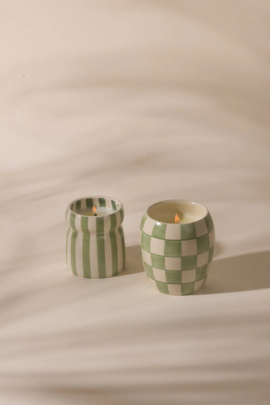 Cabana Sage Striped Ceramic Candle Bora Bora