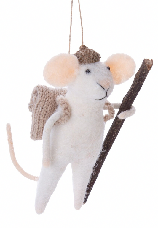 F5 - Felt Mouse with Pearl Necklace & White Feather Tutu Ornament