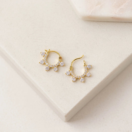 Carmen Mini Gold Hoop Single Horizontal Sripes Beaded Drop Earrings Navy