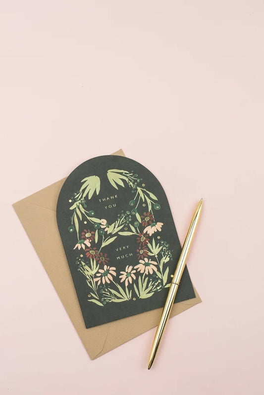 Green Floral Thank You Card