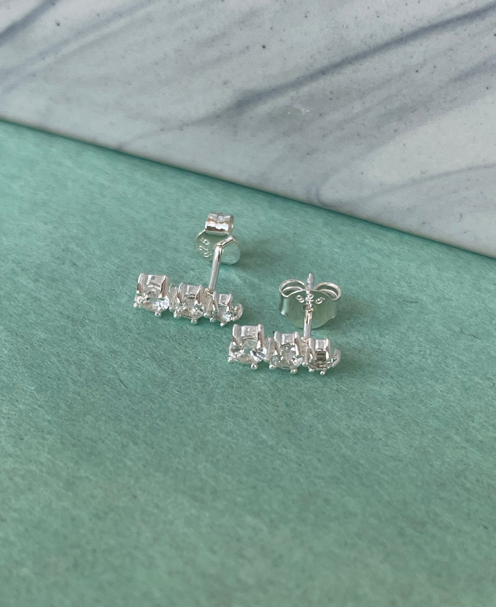3 Stacked Stone Stud CZ Sterling Silver Earrings