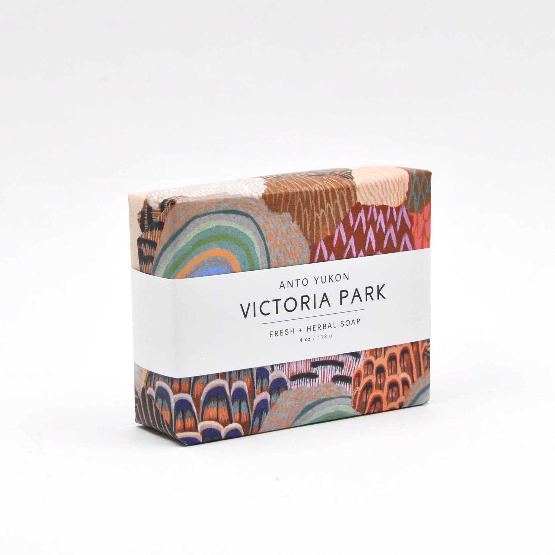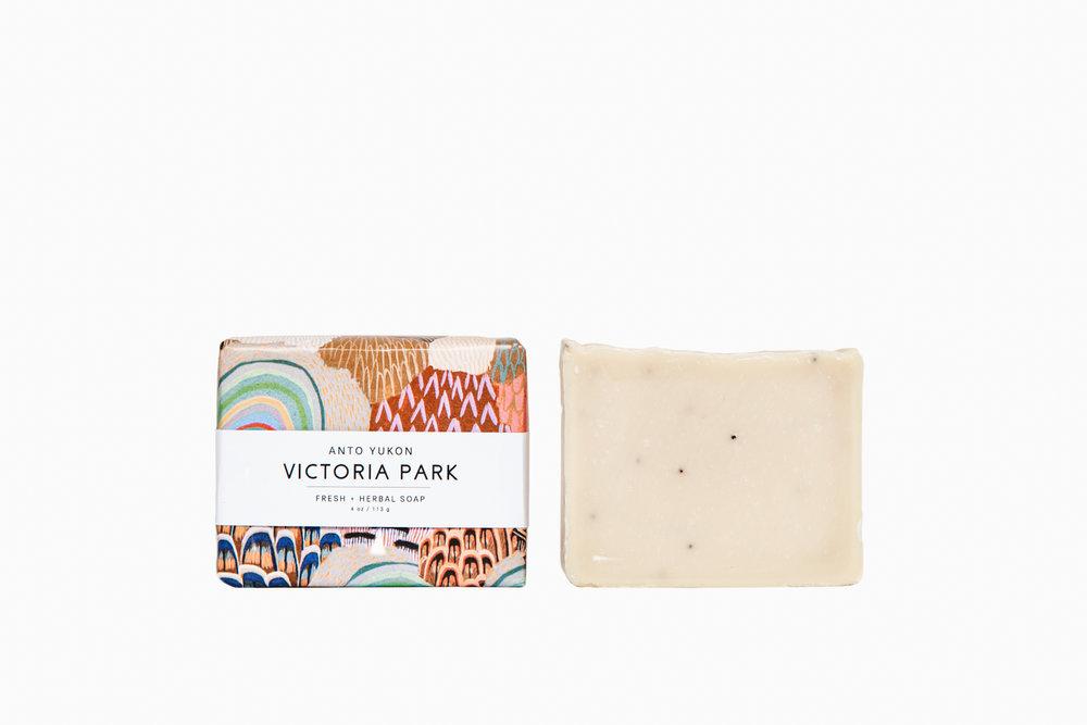 This uplifting fresh and herbal soap, reminiscent of gardens and summer parks, uses all natural ingredients, colourants, and essential oils. Victoria park is scented with lemongrass, basil, rosemary, and mint.