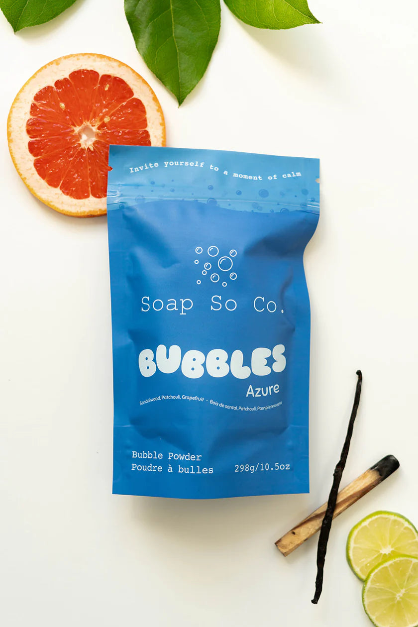 Leaving the chaos behind, relax and indulge in Azure Bubble Bath Powder. Its unique combination of sandalwood and patchouli scents creates a bold, earthy essence that will soothe your senses and wash away any worries. Let the calming aroma of Azure be your escape from the everyday grind (or existence).