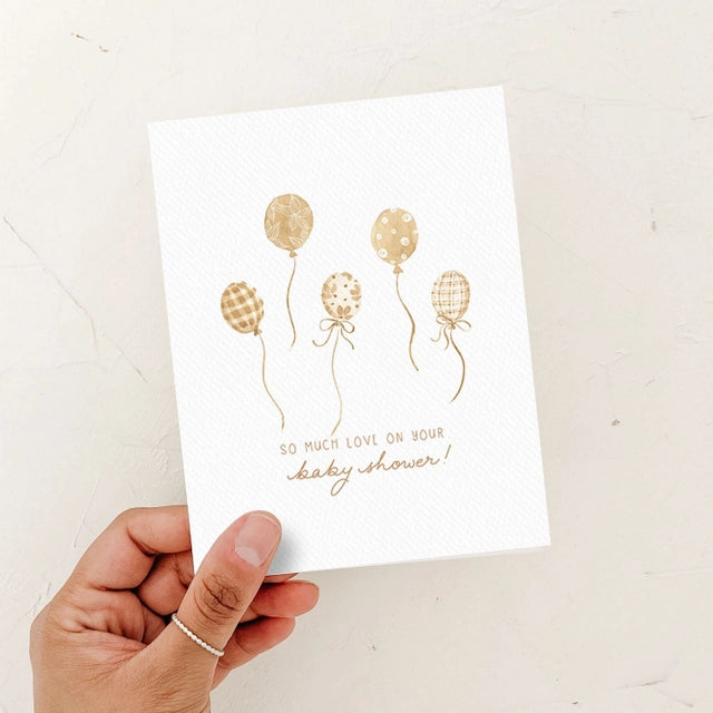 Welcome the new arrival with this charming baby shower card adorned with gentle beige balloons. Its simple, warm design brings a joyful and playful touch, making it an ideal way to celebrate the little one on the way.