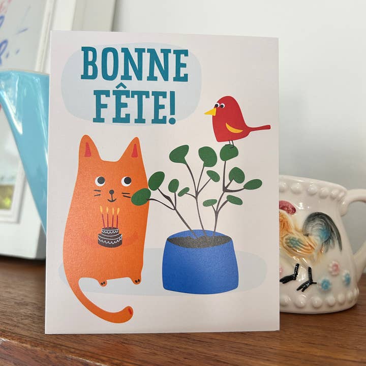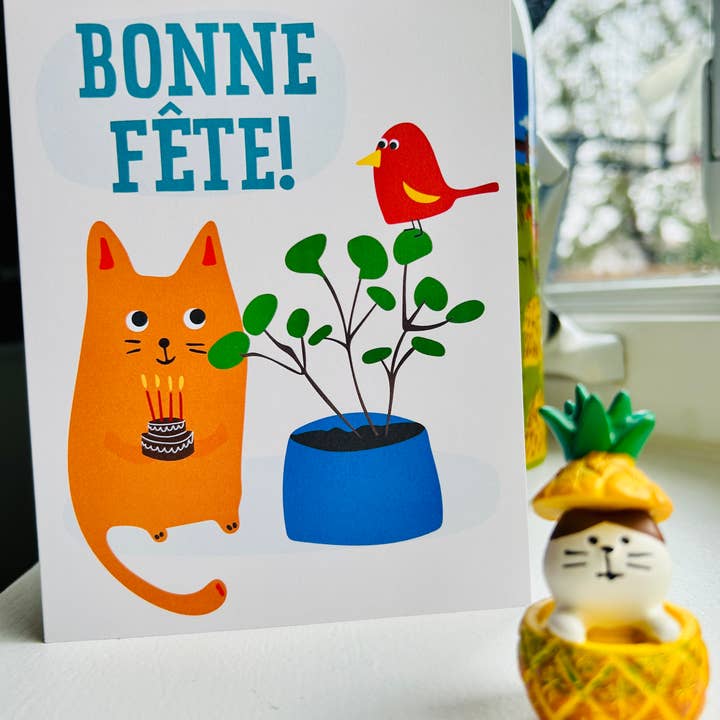 Send warm birthday wishes with the playful Bonne Fete Amour De Chat card! Featuring a charming cat design, this card brings a fun and loving touch to any celebration. Perfect for cat lovers and those who enjoy a whimsical, joyful birthday greeting.