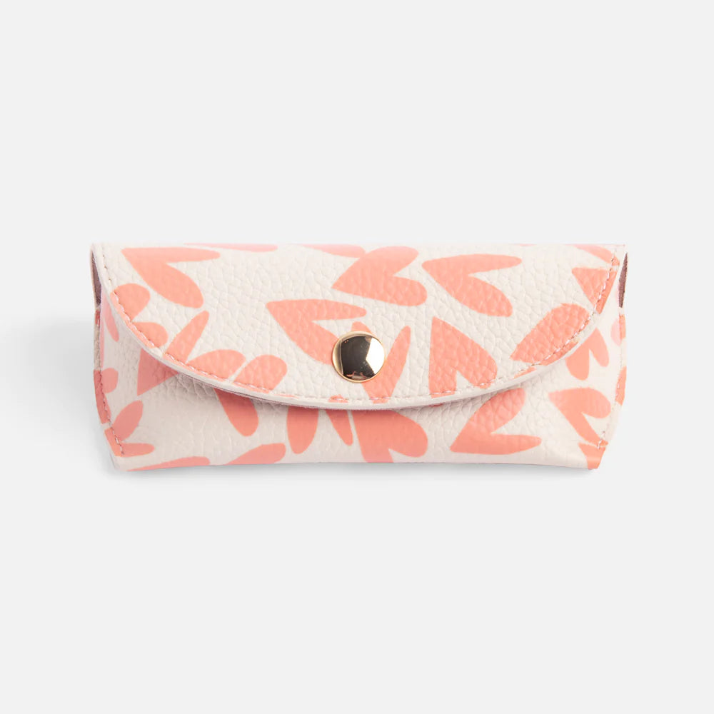 Coral Hearts Flap Glasses Case