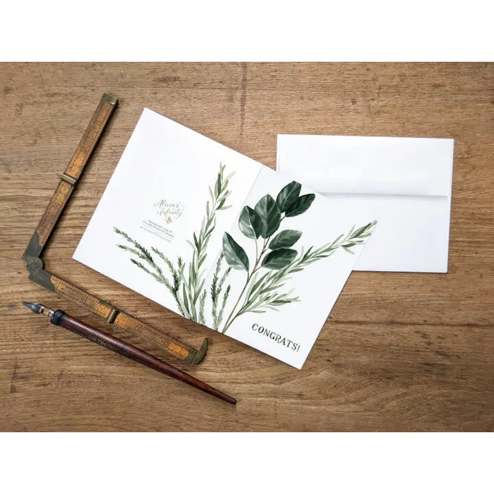 This fresh, botanical Congrats card suits anyone, featuring bold greenery sprigs and hand-painted lettering. With rich forest-green leaves and clean text, itβs the perfect way to celebrate any milestone, achievement, or special moment!