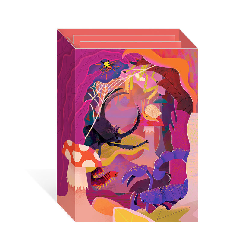 Get buggy with pizzazz! Natasha Durley's elaborate pop-up creation celebrates the alluring realm of creepy crawlies. Ideal for the outdoorsy recipient in your circle.