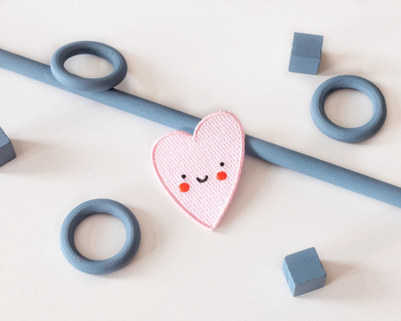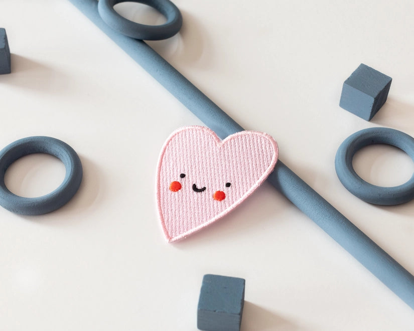 Brighten up your accessories with this adorable heart-shaped embroidered patch featuring a sweet smile!
