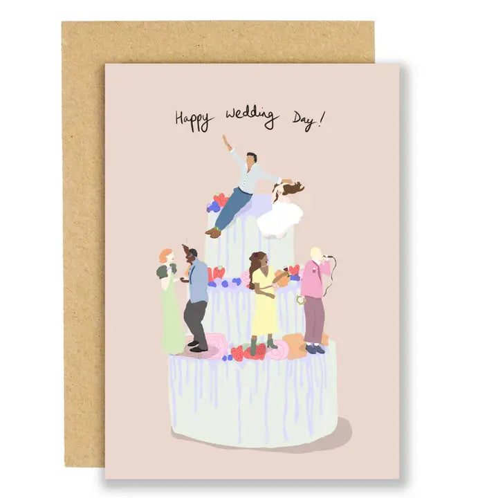 Celebrate love and laughter with the playful Dancing On The Wedding Cake card. Its fun design captures the joy and excitement of weddings, perfect for adding a lighthearted touch to your heartfelt congratulation.