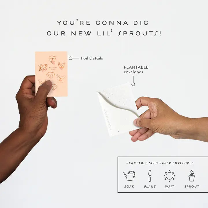 - Foil details and a PLANTABLE seed paper envelope which is embedded with wildflower seeds.