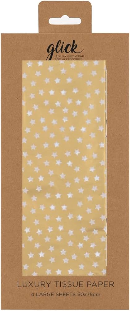 Stuff your special gifts in the sky! This Stars Gold Tissue adds a celestial touch to any present. With its shiny golden stars, your presents will seem out of this world! (And you'll look out of this world for getting them it!)