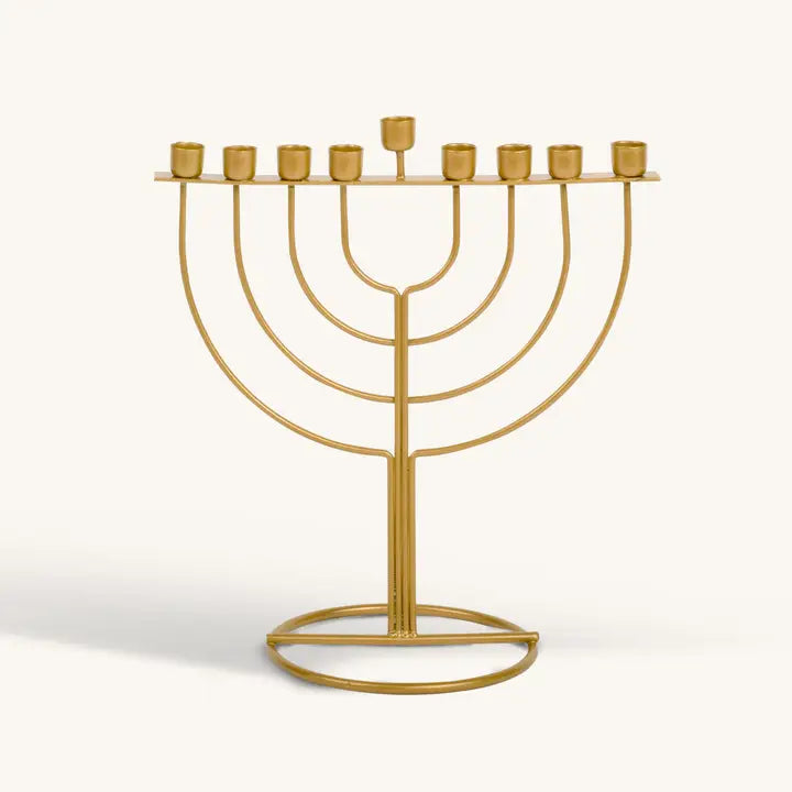 Shine bright this Chanukah with the Gold Wireframe Menorah! Its sleek, golden design adds a playful sparkle to your holiday décor, making each night glow with festive fun and elegance. Perfect for lighting up tradition with a touch of glam!