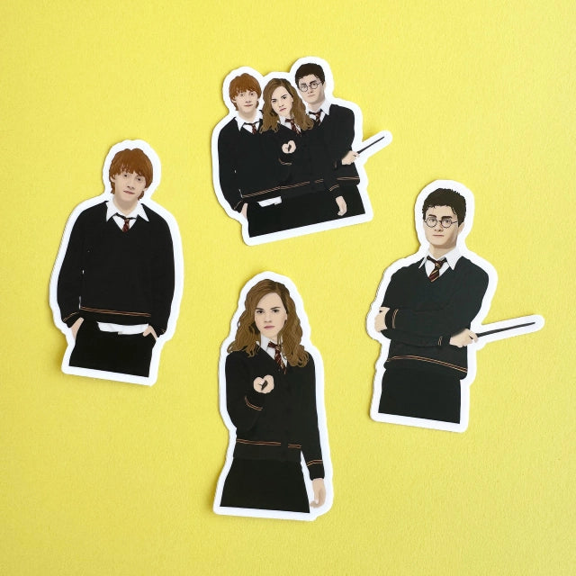 Add some magic to your stickers with the Harry Potter Golden Trio Sticker! Show off your love for the iconic trio with this playful and quirky sticker. Stick it anywhere else to showcase your fandom. (Expelliarmus boring stickers with this one-of-a-kind design!)