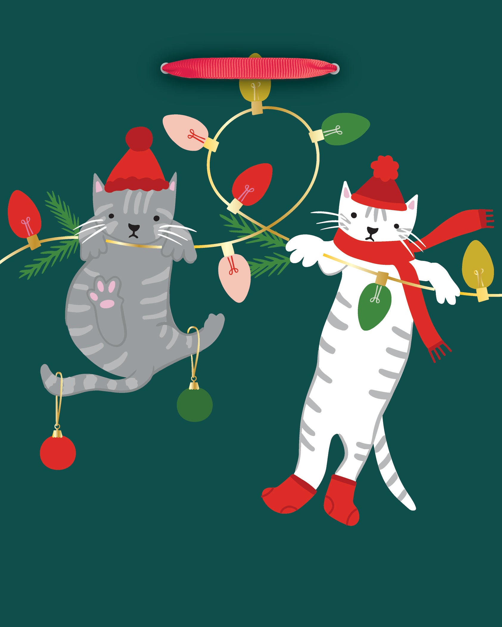 Celebrate with Holiday Cats And Lights Small Gift Bag! Purr-fect for your holiday gifts, with twinkling lights and festive felines. Say goodbye to dull wrapping and add some meow-magic! Feline-tastic!