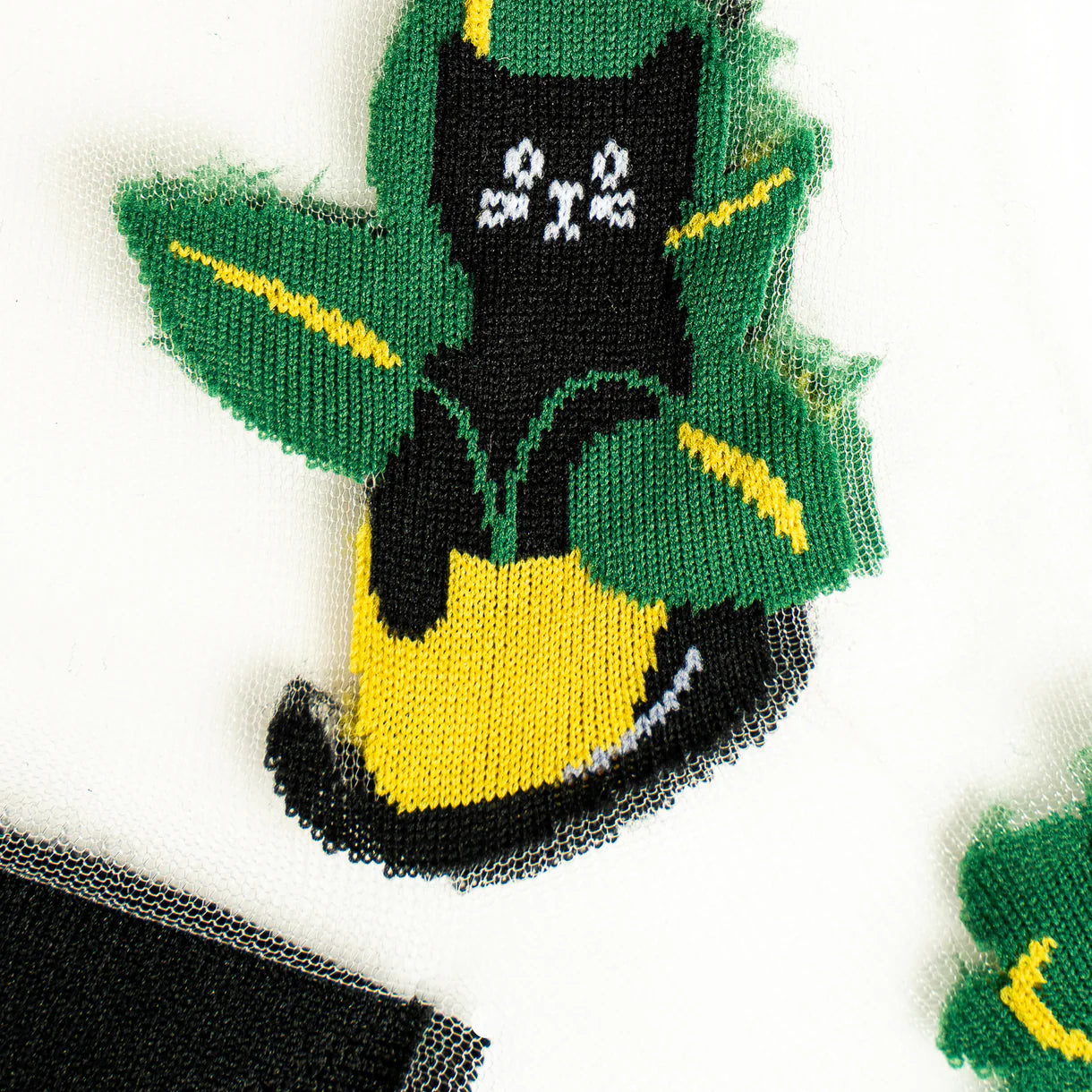 Get whiskered away with our sheer black cat socks, nestled in leafy comfort. These paws-itively adorable socks are fur real!