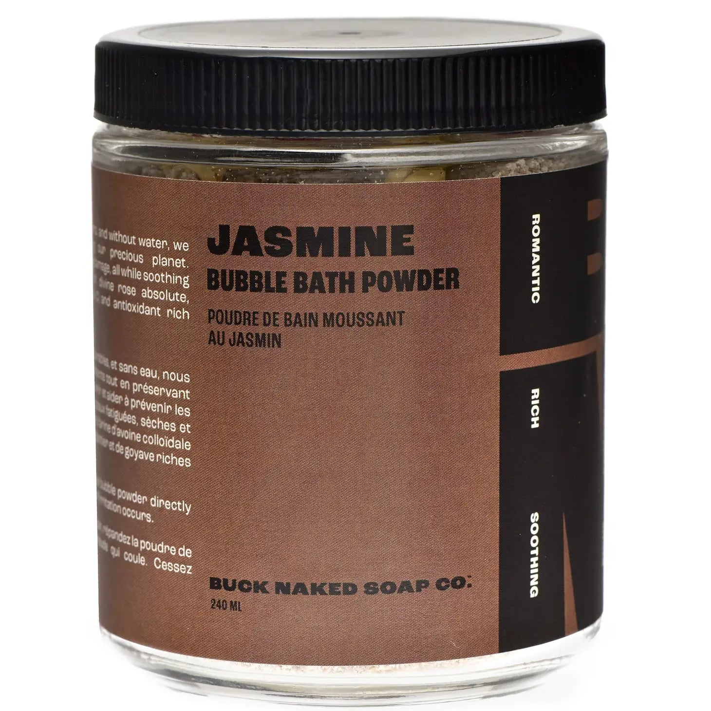 BUBBLE BATH POWDER | made with natural and sustainable ingredients, and without water, we bring you proper R&R while preserving our precious planet. Formulated to nourish and help prevent daily damage, all while soothing tired, dry and irritated skin, composed of: romantic jasmine absolute, soothing colloidal oatmeal, vitamin A, potassium and antioxidant rich banana and chamomile extracts.
