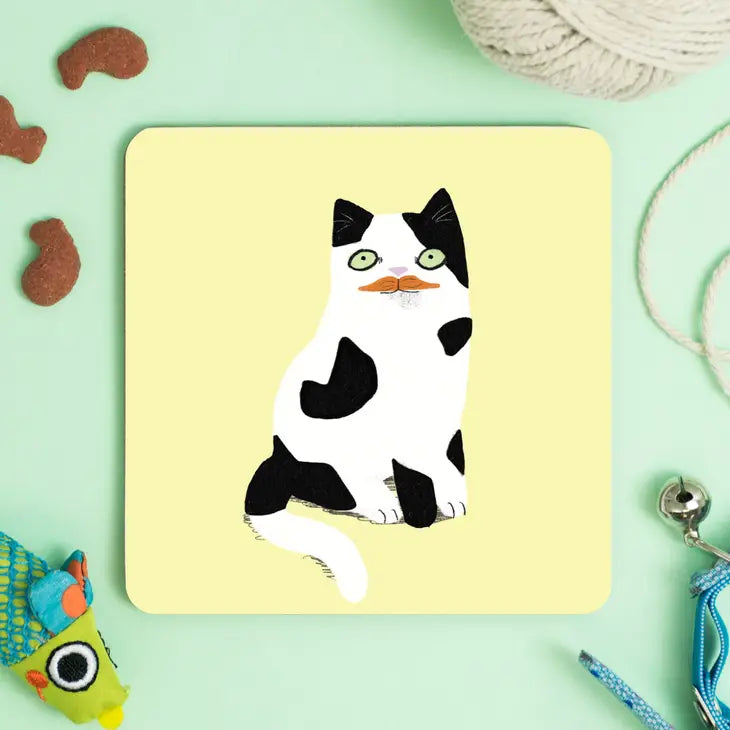 Meowstachio Cat Black & White Ginger Tash Coaster