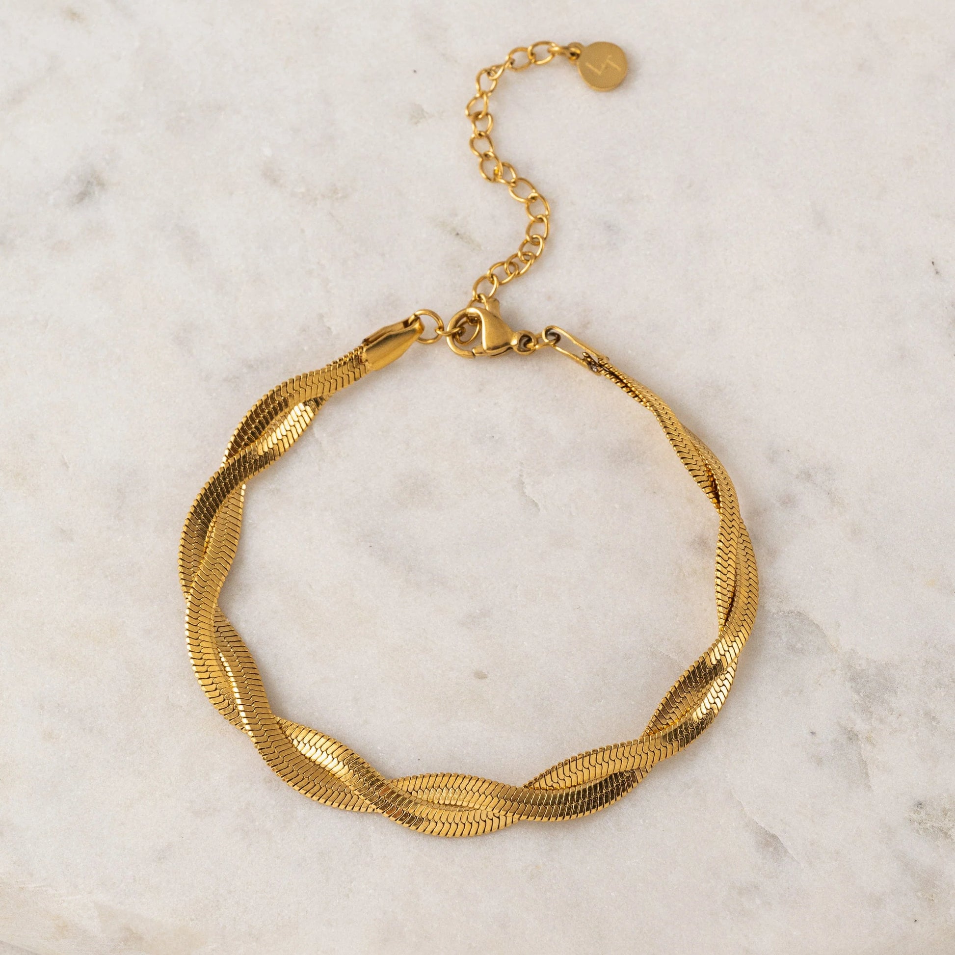 A herringbone bracelet that weaves and shines in all the right places. Made with PVD and stainless steel, you can wear this waterproof bracelet anywhere.