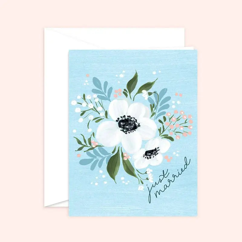 Just Married Floral Wedding Card