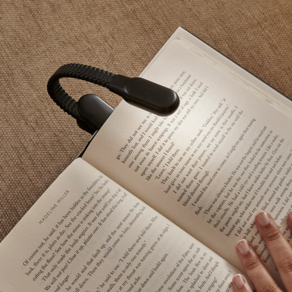 Super bright USB rechargeable booklight with adjustable gooseneck and 2 brightness levels. Pull neck from clamp to reveal USB tip. Fits standard USB charging block. Features energy efficient COB LED light for superior brightness and long lasting power.