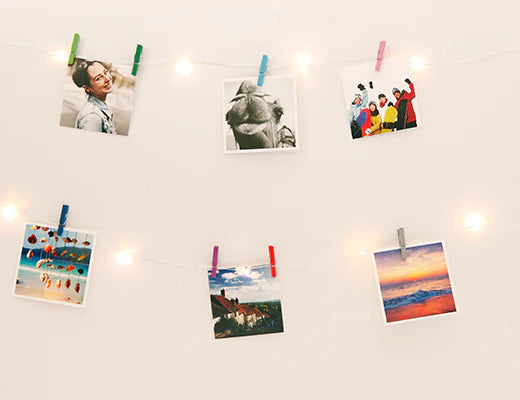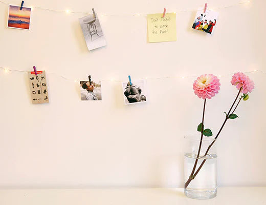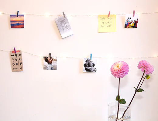 Illuminate photos, memos, and cards! 10 colored mini clothespins & 20 LED lights.