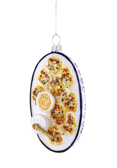 Add some deliciousness to your holiday decor with our Latkes Ornament! Made from glass, this quirky ornament is designed to look like a plate of latkes. Perfect for adding a touch of culinary charm to your tree, or for gifting to your foodie friends. Happy Hanukkah!