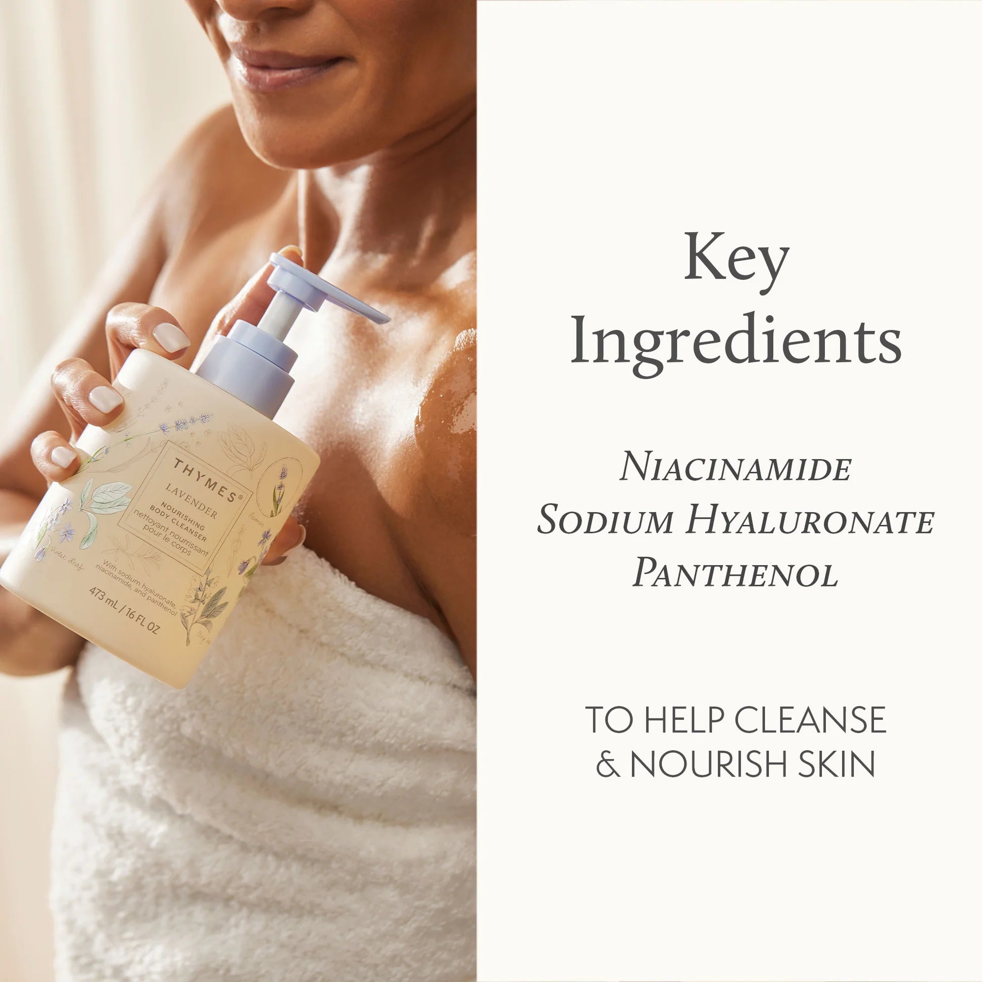Unwind with every wash and elevate your daily shower with this skin-loving body cleanser. Infused with niacinamide, sodium hyaluronate, and panthenol, it helps refresh and replenish skin. The calming scent of lavender, rosewood, clary sage, and violet create a soothing spa-like experience, perfect for winding down. The soft-touch plastic bottle with an easy-to-use pump is designed for everyday use. For a full routine, pair with our Lavender Replenishing Body Lotion.
