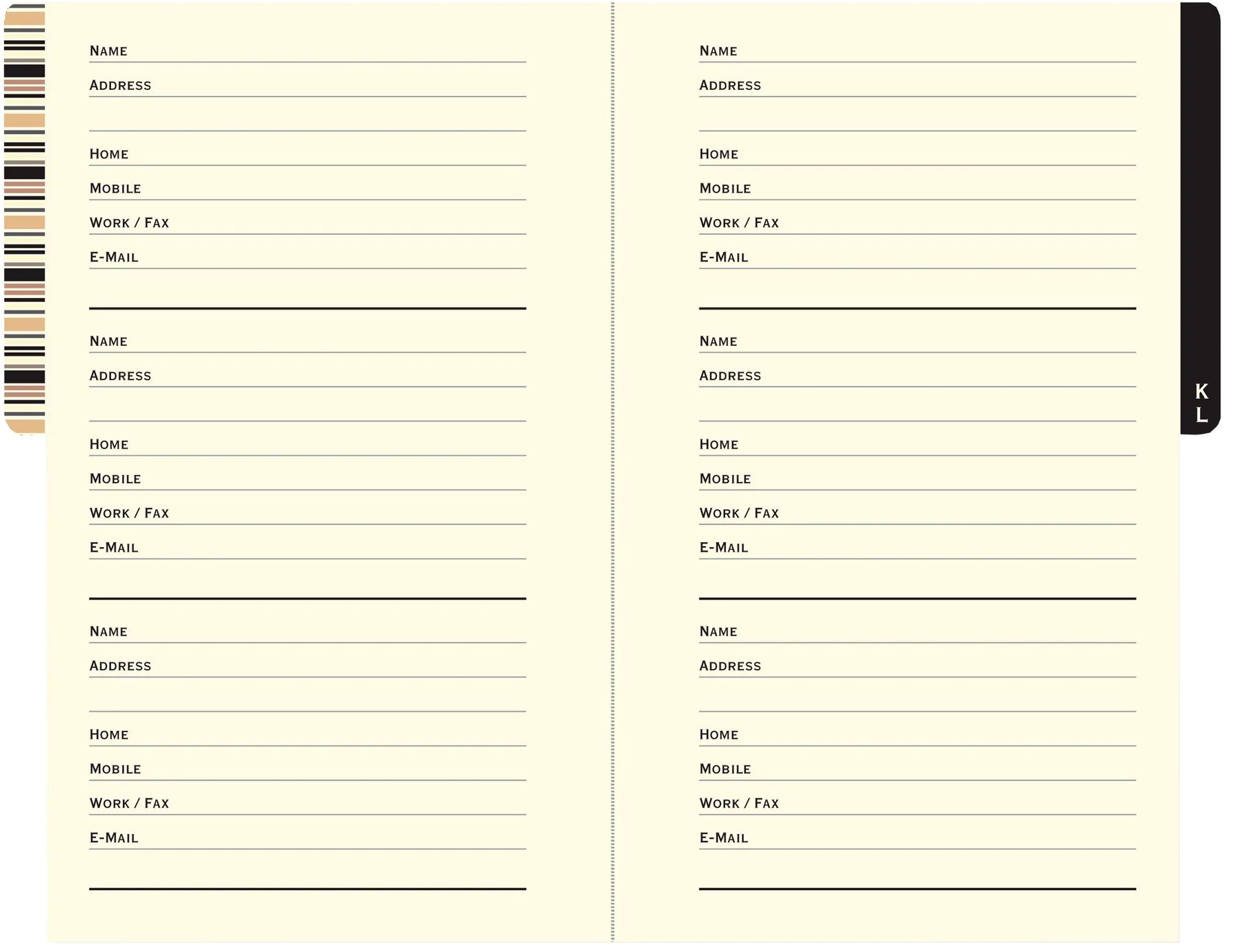 - Pocket-sized personal address book has space for more than 400 contacts.