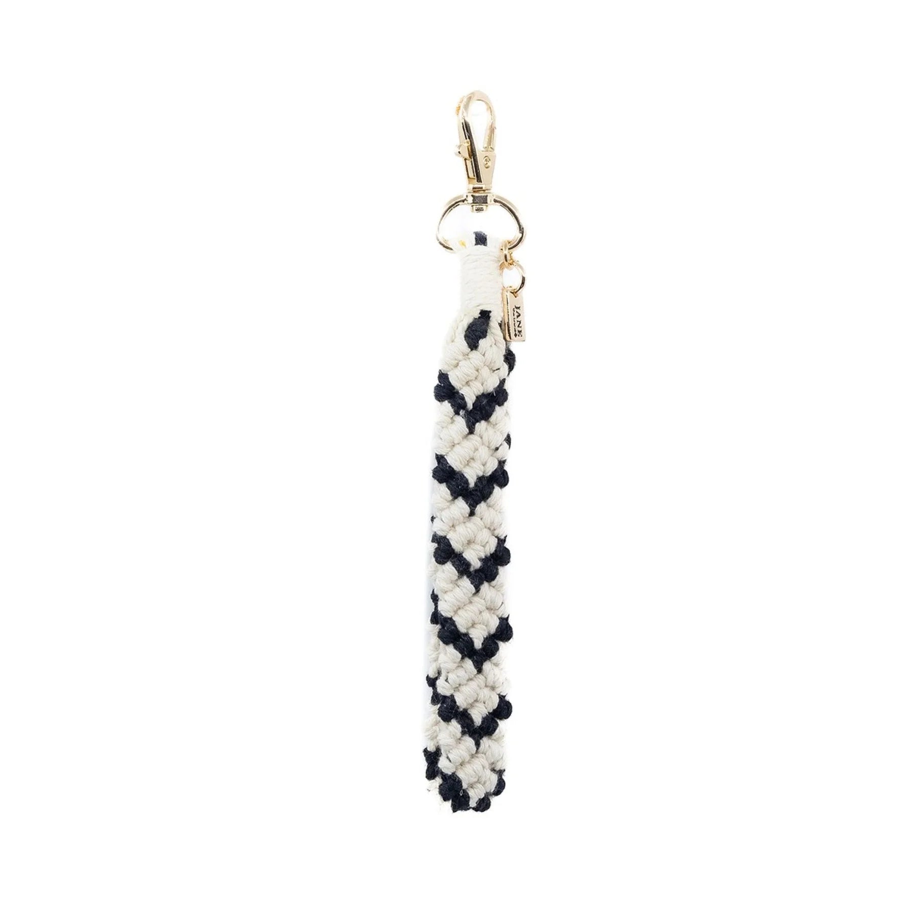 This handcrafted red and white macrame charm brings a touch of boho elegance to your accessories. The contrasting colours and intricate knotting add a bold yet refined texture, perfect for adding a unique flair to your bag.
