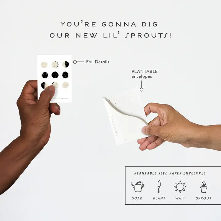 Celebrate birthdays with a whimsical touch using the Many Moons Sprout Mini Greeting Card! Featuring a playful moon-themed design and the cheerful message "Wishing you Many Moons," this mini card adds a fun and imaginative flair to your birthday wishes.
