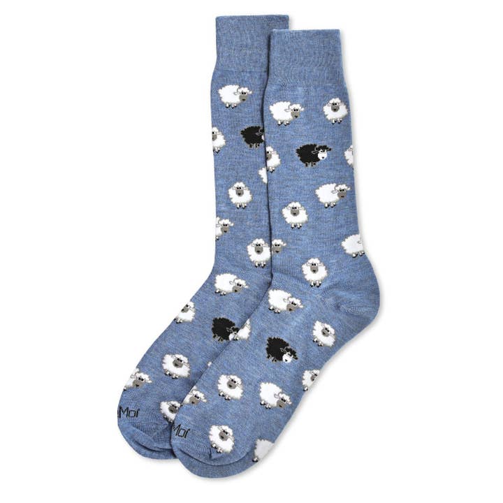 Upgrade your sock game with these Men's Bamboo Crew Socks in Denim Heather Sheep. Soft, eco-friendly, and stylish with a funky sheep design, these socks are perfect for any occasion and will keep your feet feeling great all day.