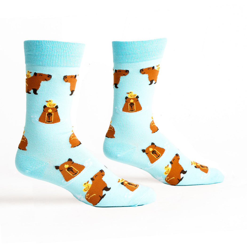 Spread happiness with our Men's Crew Happy Bara Socks! Featuring playful capybaras, these socks are sure to bring a smile to your face and brighten up any outfit. The perfect combination of comfort and cuteness for your feet.
