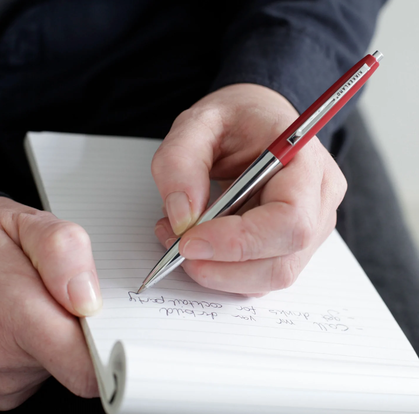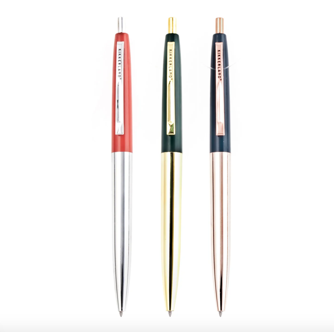 Do you love the show Mad Men? We do. These pens look like they were lifted off the set. Go to the office in swanky style. Sturdy and high quality. Set of 3 ballpoint pens. 1mm. Medium point. Black Ink.