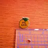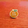 Hard enamel orange pin with he/she pronouns and a little leaf, to share your pronouns in a cute and subtle way. For all fruit lovers, queer friends, and allies!