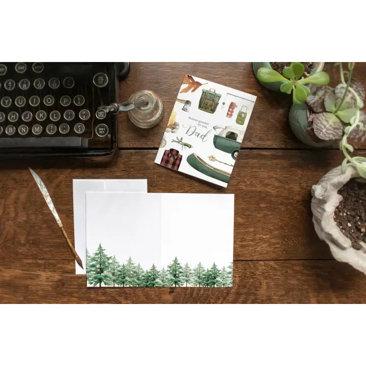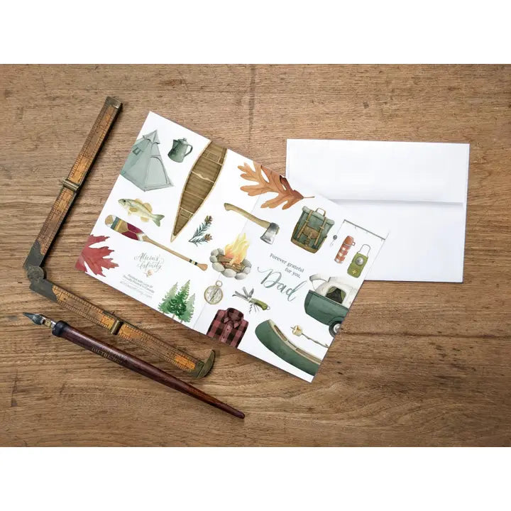These Father’s Day cards are perfect for dads who love the outdoors, camping, hiking, and nature! They feature the phrase “Forever grateful for you, Dad” alongside some of my favorite vintage-inspired camping and hiking gear. Great not only for Father’s Day but also for birthdays or just because!