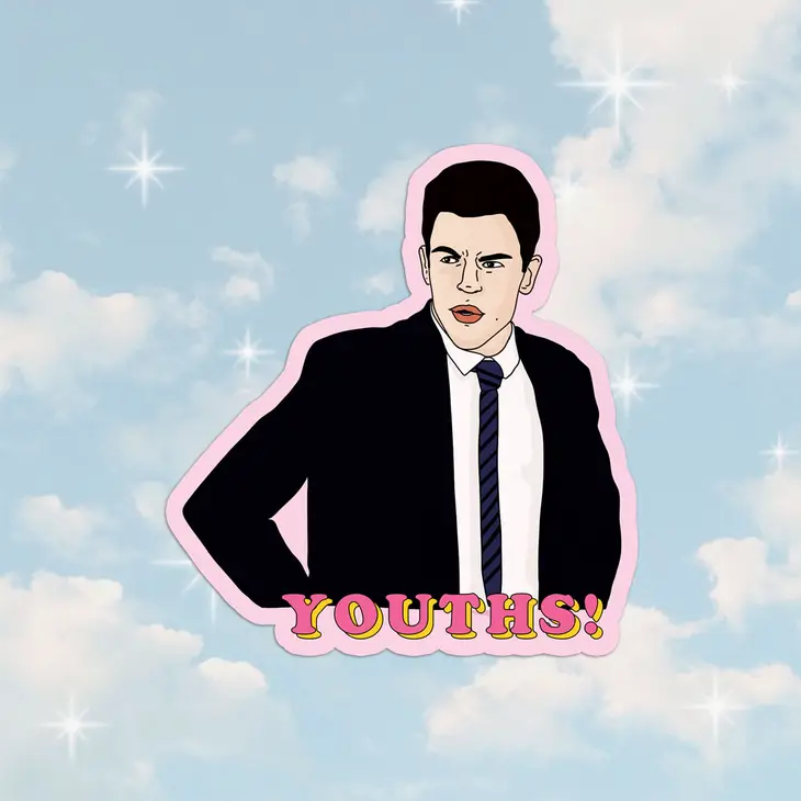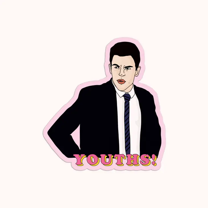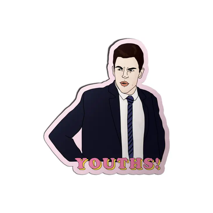 Show your true colours and express your fun side with this vibrant Schmidt Youths! Sticker. It'll add a stylish splash of colour to your life that's sure to have your friends saying "Hey, that's wicked cool!"