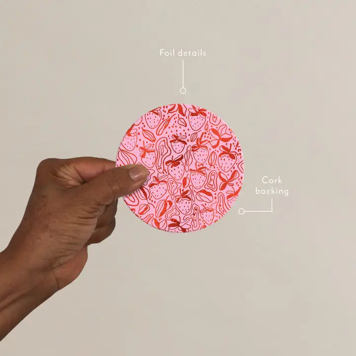 Add a splash of sweetness to your table with the Pink Strawberries Seedlings Coaster! This playful coaster features charming pink strawberry seedlings, brightening up any space while protecting your surfaces from spills and stains. Perfect for cozy coffee breaks or lively get-togethers, it combines fun design with practical use, making every sip a little more delightful.