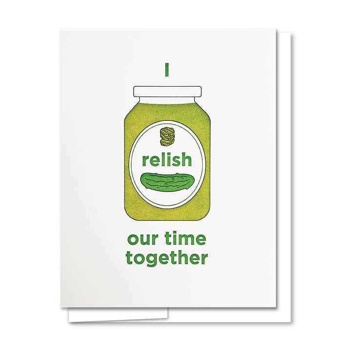 This card features the clever phrase "I relish our time together" - perfect for expressing your love, friendship, or appreciation.