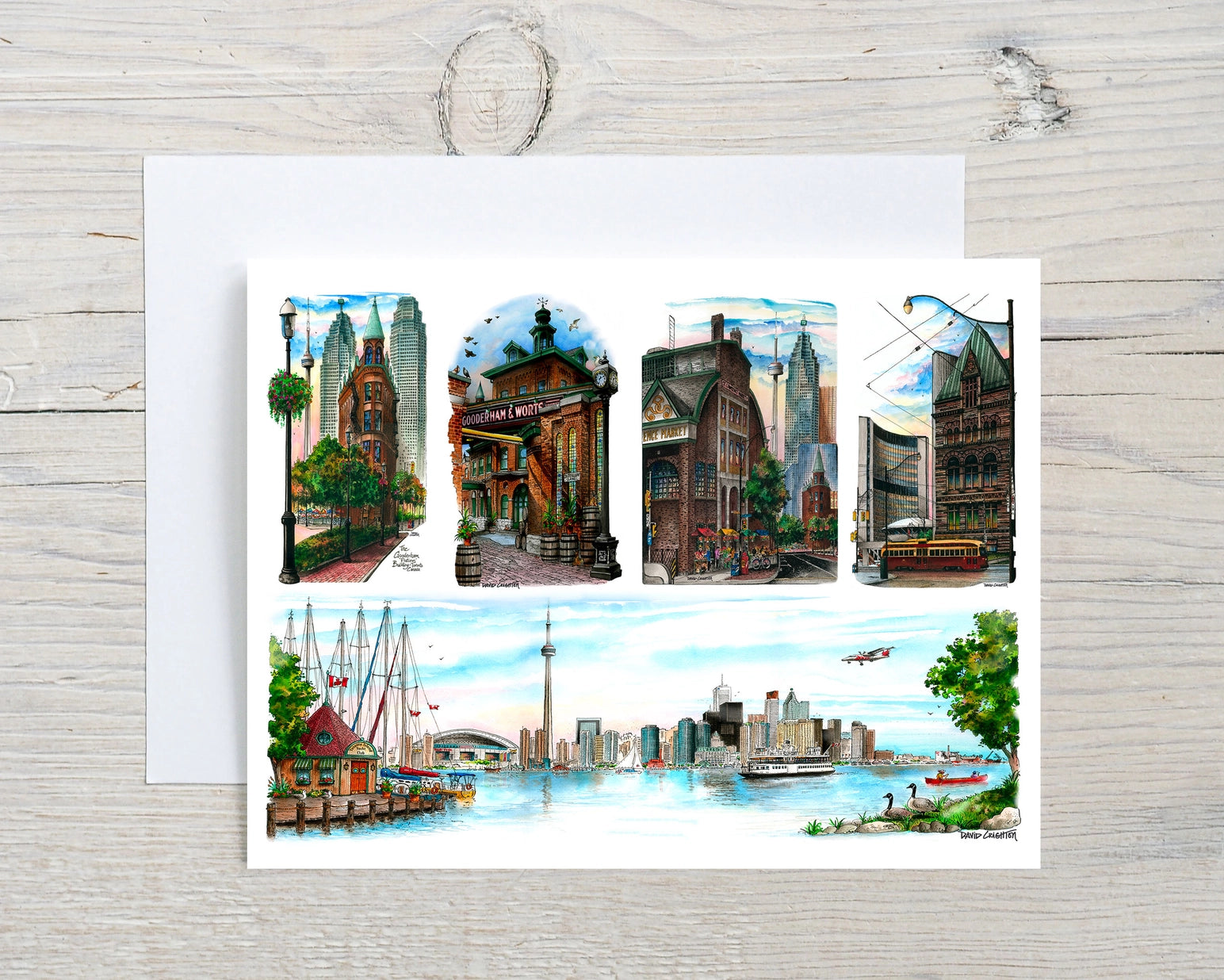 Here is the perfect souvenir greeting card of Toronto's Historic landmarks and skyline featuring 5 best-selling landmark illustrations of David Crighton