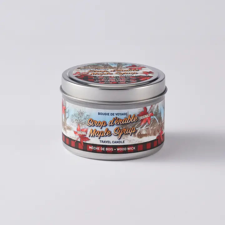 Bring the sweet, cozy aroma of Canadian maple syrup on the road with our 3.5oz travel candle in a charming maple-hued tin. Featuring a crackling wood wick responsibly sourced from well-managed forests, this hand-poured Canadian candle creates a warm, inviting glow wherever you light it. Ideal for travel, snug spots, or as a delightful gift, it fills your space with comfort and a clean burn every time.